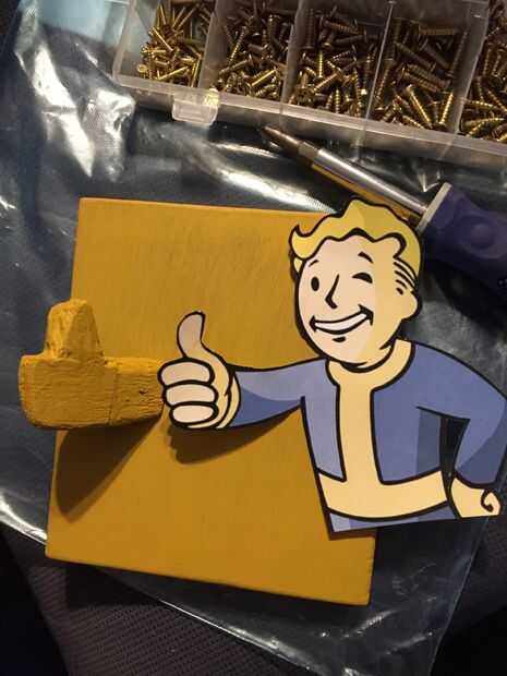 Para el muchacho de la bóveda, ate el pedazo de gancho de suspensión a la placa base con pegamento y un tornillo pequeño. Perfore un agujero piloto para alinear las piezas.