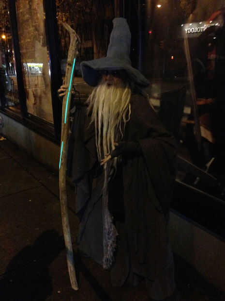 Mashup perfecto de 50 tonos de gris y Gandalf el gris del Señor de los anillos. La traje de usa exactamente 50 sombras de gris muestras y el personal fue hecho por mí. Incluso se ilumina en la oscuridad.