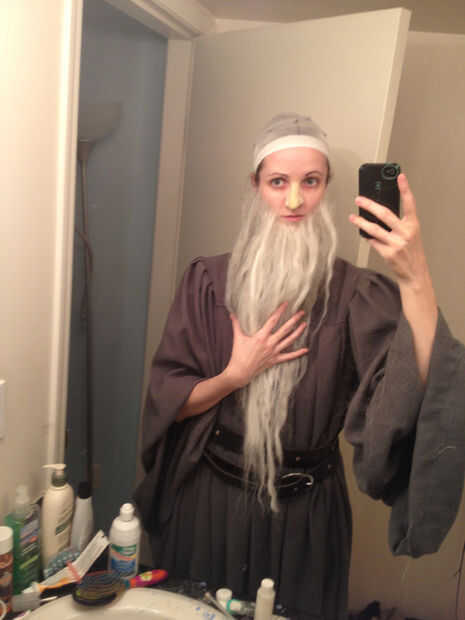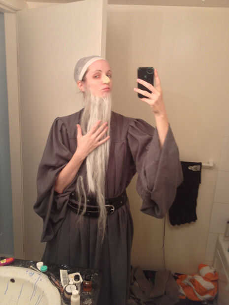 Aplicar la nariz con espíritu-goma/pros-aid. He utilizado pros-aid - que cose para que el adhesivo de elección hoy en día - pero utilizado goma de espíritu para la barba; es lo que mejor funcionó para mí. Cuando la nariz se pega completamente en, comenzar añadiendo capas de látex en los bordes para ayudar a esconderlos. Cuando esté satisfecho, cubra la nariz en Castor sellador, polvo, polvo y maquillaje de crema se aplican otra vez.