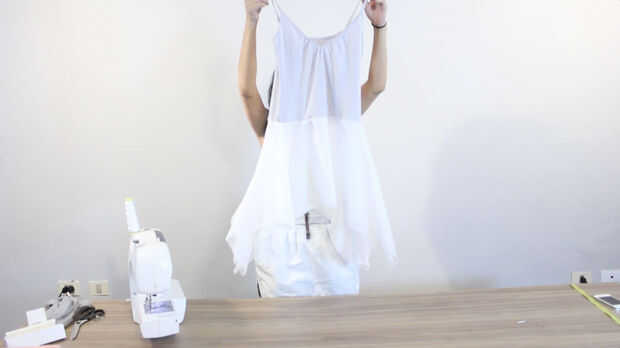 #4 cortar un agujero a través de ellos y coser a la parte superior del tanque (mantener las dos piezas de tela de Gasa con alfileres antes de coserlos).