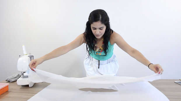 Tomar aproximadamente dos metros de tul y cortar la tela a la mitad.