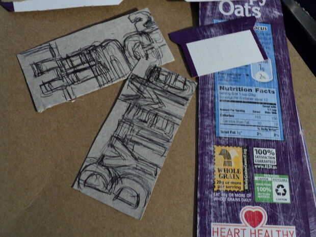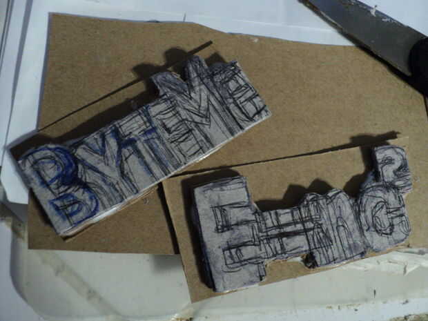Bloquear hacia fuera donde usted cortará hacia fuera. No tienes que recortar cada letra.