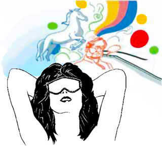 * Usar una máscara para dormir o sentarse en una habitación oscura pone el cerebro a dormir. El cerebro necesita permanecer despierto y con mínima entrada sensorial para inducir alucinaciones. Mirando un campo blanco sin rasgos distintivos con ninguna señales de profundidad, forma o distancia mantiene el cerebro alerta y buscando información. Cuando no hay información, el cerebro comienzan amplificando los sentidos, hasta que el ruido neuronal se confunde como información sensorial real. Sueños se producen de una manera similar.