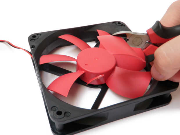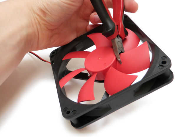Con un par de pinzas, quite tres álabes adyacentes desde el ventilador de la computadora.