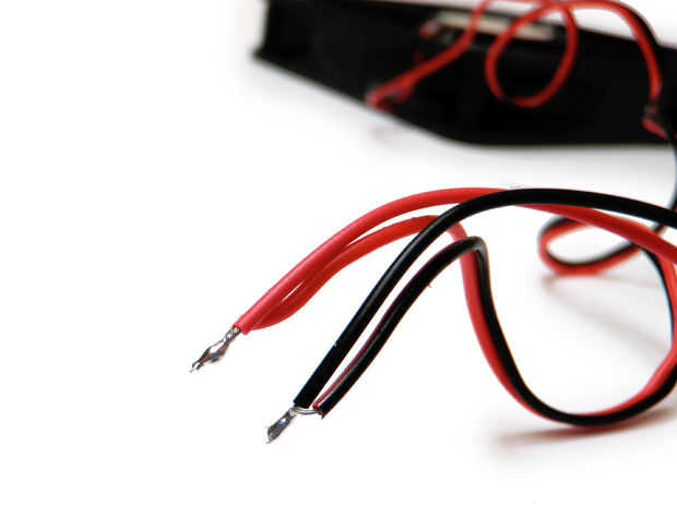 Soldar el cable rojo del conector de la batería con el cable rojo del ventilador.