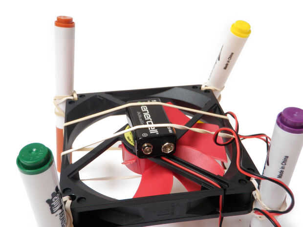 Goma de la batería en el ventilador de manera que no interfieran con el giro del ventilador.