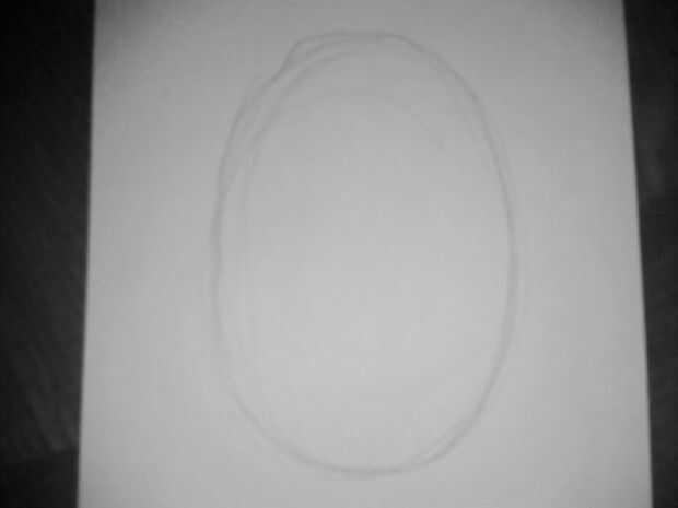 Paso 1: * dibuja un óvalo en el centro de su página. Una manera fácil de obtener un óvalo adecuado es sacar un huevo. Invertir su papel y dibuje la dirección opuesta otro huevo. (es decir: el punto superior de su primer huevo es el punto exacto inferior del segundo huevo y viceversa).