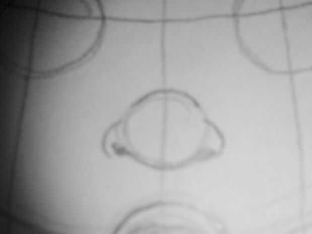 Paso 6: * dibuja un círculo alrededor de la mitad del tamaño de tus ojos, alineados en el centro de la vertical línea que comparten redes 10 y 11. (Nota: este círculo representa la nariz de la cara y se referirá así de ahora en adelante.)