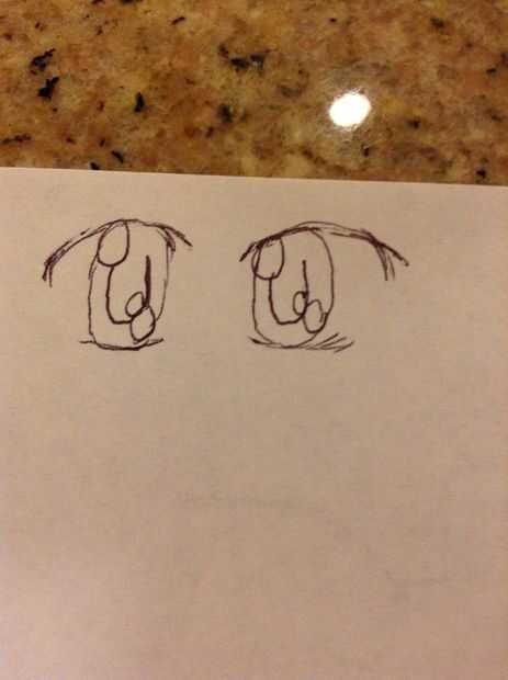 Plan de los ojos. Voltee el papel un Marque ligeramente un par. Utilice su propio o los dibujé.