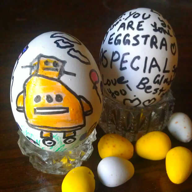 Este arte no es sólo para Pascua! La próxima vez que empacar un almuerzo para alguien, añadir algunas notas para el envasado de la cáscara de huevo. ¿No está de acuerdo en cómo se deben cocinar huevos? Marque los huevos "suave hervidas" o "duros". ¿Aburrido, esperando el autobús? Dibuja unas cuantas obras maestras en los huevos de almuerzo! ¿Cansado de tener compañeros de robar el almuerzo? Poner su nombre en algunos huevos.