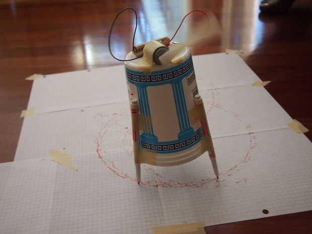 Garabateo son artilugios motorizados que se mueven de maneras inusuales y dejan una marca para trazar sus caminos. Están fabricados de materiales simples y puestas en marcha un motor vibrante offset haciéndolos rebotar, girar, golpear y moverse de ma