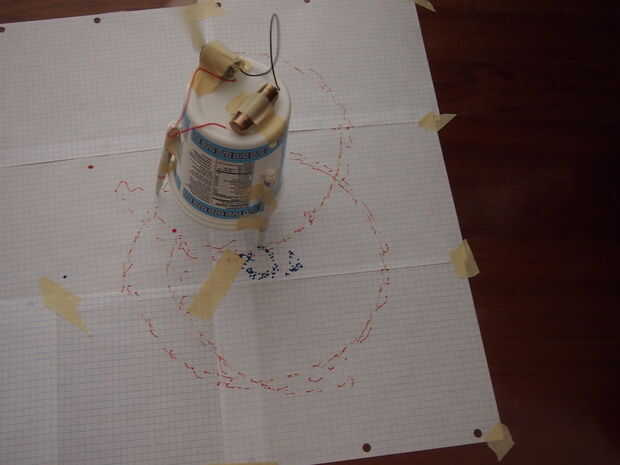 Garabateo son artilugios motorizados que se mueven de maneras inusuales y dejan una marca para trazar sus caminos. Están fabricados de materiales simples y puestas en marcha un motor vibrante offset haciéndolos rebotar, girar, golpear y moverse de ma