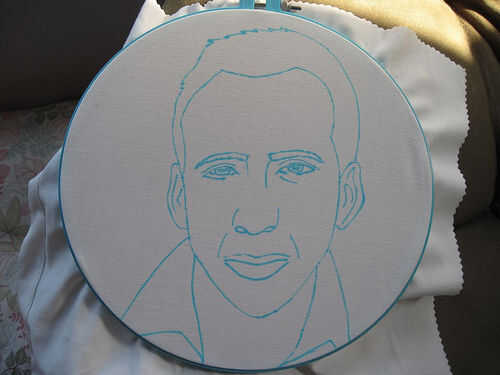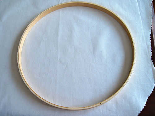 Fijar el aro sobre la tela para que sepas cómo es grande de una imagen se puede dibujar.