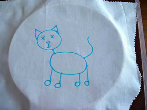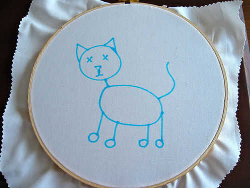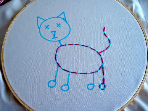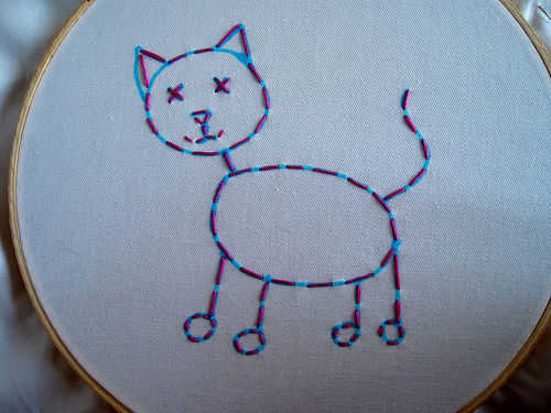 Usar hilo de bordar negro para los contornos y color en la imagen después con marcadores o usar seda bordado coloreado para hacer los contornos.