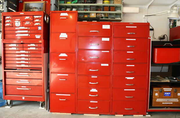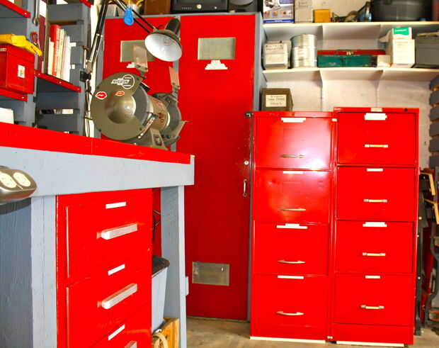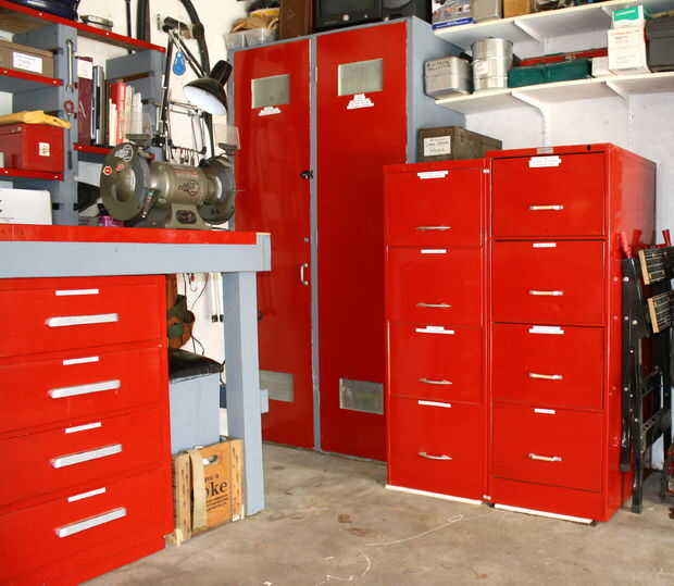 ¿estás cansado del desorden en tu garaje? ¿Cansado de no poder ubicar las cosas en su garage? Sé que fui, así que me decidí a hacer un reno total en mi garaje y que no quería pasar una tonelada de dinero. Pude ubicar 6 archivadores grandes en Kijiji gratis. Yo podría haber conseguido más, pero eso fue todo lo que necesitaba. Compré un par de cuartos de galón de pintura de lustre Tremclad fuego rojo y pintados todos los gabinetes. Luego compró un galón de pintura de imprimación gris y pintado mi banco de trabajo y las dos unidades de la estantería que había dejado. Compré algunos moldura metálica de Totem y había pintado rojo fuego. Usé estos como frente de ajuste en los anaqueles. Apenas habíamos terminado haciendo los pisos de nuestra casa y tuve un par de cajas de piso izquierda sobre laminado. Usé esto como la parte superior de mi banco de trabajo. Luego poner una de acero inoxidable ajuste en la parte delantera del Banco y había pintado rojo también. Una vez cada cosa en su lugar que tomé todas mis herramientas, piezas, pinturas, limpieza suministros, herramientas y lubricantes y meterlas todas en los cajones del archivador. Una vez tuve todo lo justo donde yo quería, etiquetados todos los cajones en cuanto a lo que era en ellos. Ahora cada cosa en mi garaje tiene un lugar y no hay ningún desorden. Con todo lo que se etiqueta, cualquier persona puede encontrar cosas. Que hizo mi vida mucho más fácil y mucho menos frustrante. El proyecto entero fue menores $100,00. Si este es el tipo de organización del garaje como, que consiga en estas de compra y venta sitios, como Kijiji y encontrará todo tipo de elemento de almacenamiento gratis. Si alguien tiene cualquier pregunta, sienta por favor libre de enviarme por correo electrónico en: