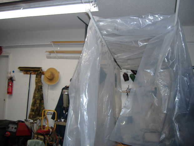 Asumiendo que usted tiene la lona desde el lado izquierdo de la cabina de carga, debe tener una pared izquierda, techo, pared de la derecha y luego un piso. El piso debe ser que el derecho doblado detrás de la pared. Además la pared izquierda debe tener el resto de la lona se separó hacia fuera en el garaje.