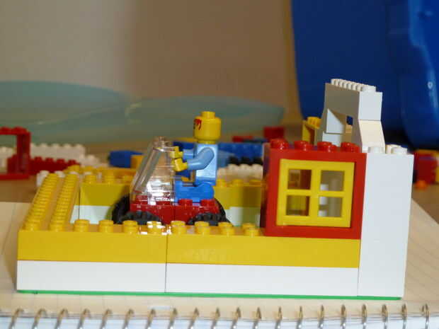 Detrás de la esquina izquierda agregar un rojo & amarillo Lego ventana.