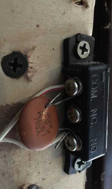 Nota: he añadido un condensador de 100nF pequeño en las terminales del interruptor ya que creo que estaba recogiendo algunos RFI perdida a veces del motor de puerta de garaje que amaba los cables muy largos (antenas) de los interruptores magnéticos. Esto puede ser un buen complemento para su aplicación si usted tiene problemas con el Arduino "colgar".