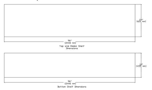 En primer lugar, tienes que copiar la hoja de OSB por la mitad para hacer 2 estantes ancho de 24"(600 mm). Estos serán la parte superior y estantes centrales. La siguiente hoja de OB debe ser Ripeado hasta 18"(450 mm) de ancho y 24" (600 mm) de ancho. Una tabla vio ayuda, aunque una mano firme con la habilidad vio voluntad funcionan casi tan bien.
