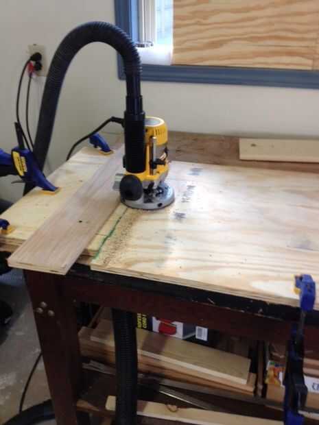 Usé un router de 1/2" en mi router de inmersión para cortar a las guías. Corte 1/2" de profundidad.