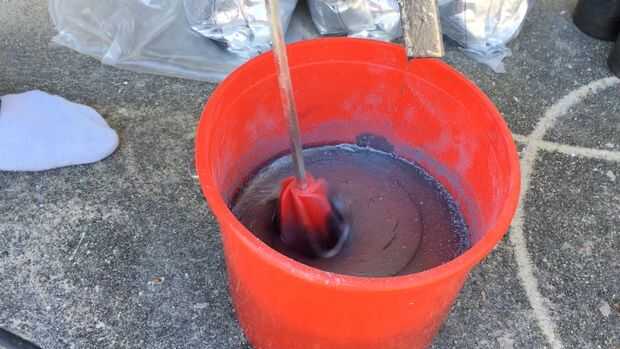 El kit viene con una bolsa con dos componentes que deben ser mezclados. Entonces usted mezclar con el tinte metálico en un cubo.