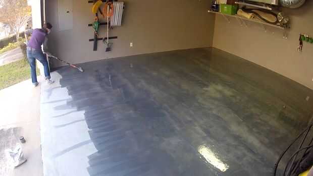 Utiliza un cepillo para acabar los bordes y luego vierte la capa en el suelo y utilizar un rodillo para aplicar.