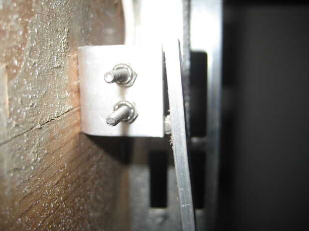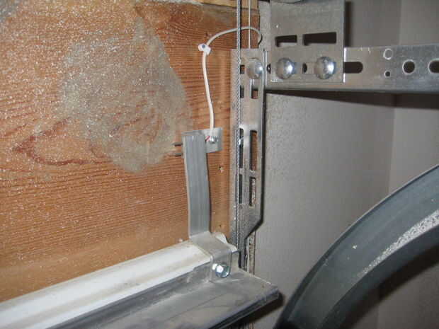 El interruptor está conectado a los contactos normalmente cerrados por lo que no hay por circuito cuando el interruptor está pulsado mientras la puerta de garaje está en la posición abierta y el LED no recibe energía. Para hacer esto tuve que añadir un trozo de aluminio en el borde superior de la puerta del garaje. Cuando se cierra la puerta de garaje aluminio se mueve a posición contra el rodillo en el interruptor. Cuando se abre la puerta del garaje se suelta la palanca y el interruptor pasa a la posición cerrada y se suministra corriente a lo LED.