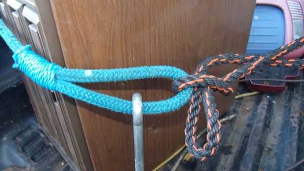 Con el lazo, anillos y el ojo en una cuerda y la cuerda larga desde el otro lado puedo hacer un tipo modificado de camioneros enganche pasando el extremo de una cuerda a través de un lazo en el otro y tirar contra el bucle para apretar las cuerdas, un as de guía modificada entonces asegura las líneas juntos. También llevar una pequeña bolsa llena de cuerdas, las correas del trinquete y cuerdas del amortiguador auxiliar pero los 2 cables conectados hacen aproximadamente el 95% de las necesidades de asegurar