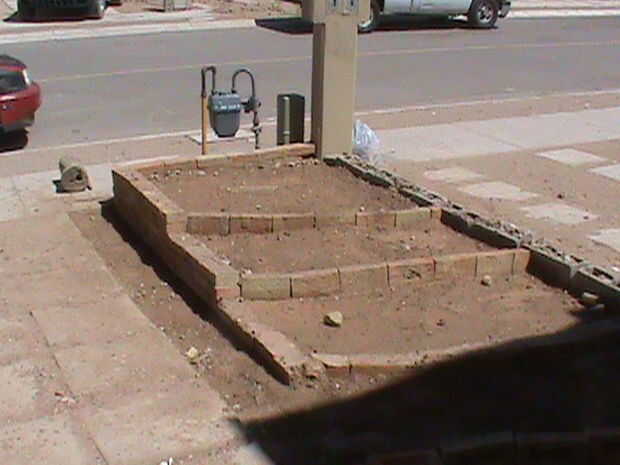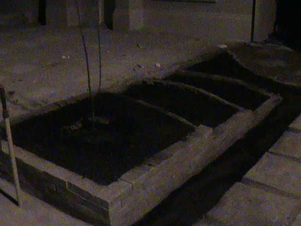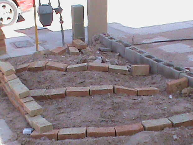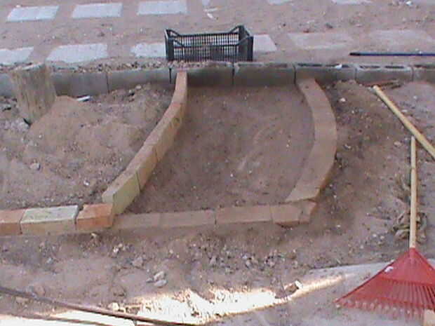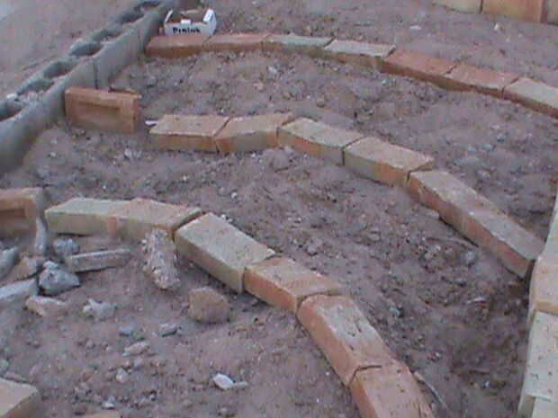 entonces levanto los niveles, tres en este caso, luego poner en siempre uno de ellos un montón de arena, tomada desde el jardín, utilizar ladrillos que encenderán cada nivel y había levantado de la anterior.