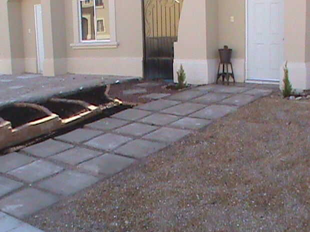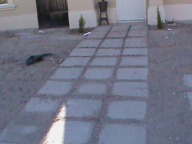 mi casa tiene algunos pasos, 27 de 20 "x 20" y 9 de 3'x 20", llevó a cabo y reorganizarlos para formar un solo camino directamente a la casa de la puerta, también formé otro camino a la puerta del patio.