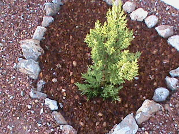 planté dos Cupressus Macrocarpa (A.K.A limón Cedrus) en cada lado de la puerta