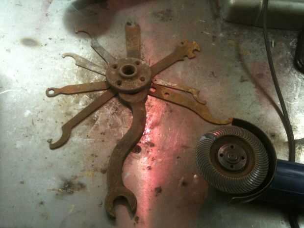 2. use la amoladora con una lijadora para limpiar el óxido de las llaves muy importantes donde se realizará la soldadura.