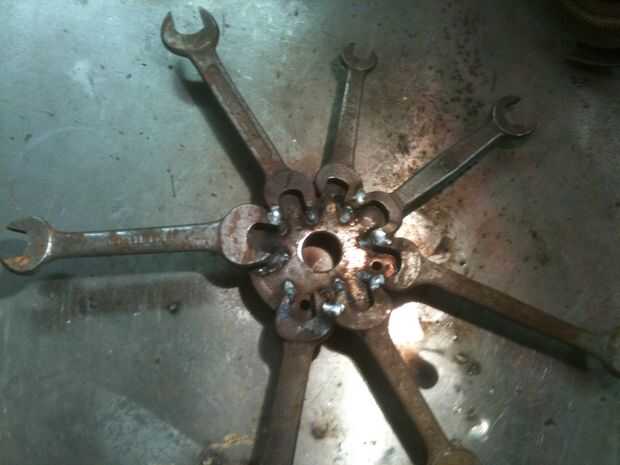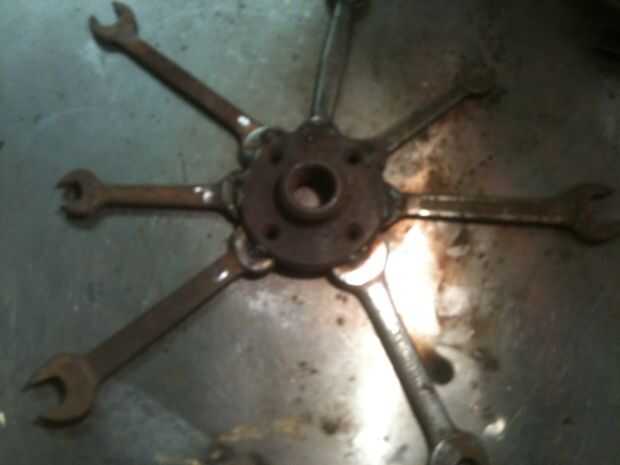 Mi esposa quería flores para dia de las madres así que creado un girasol y un black eyed Susan de antiguas llaves oxidadas y un par de otras herramientas desechadas.