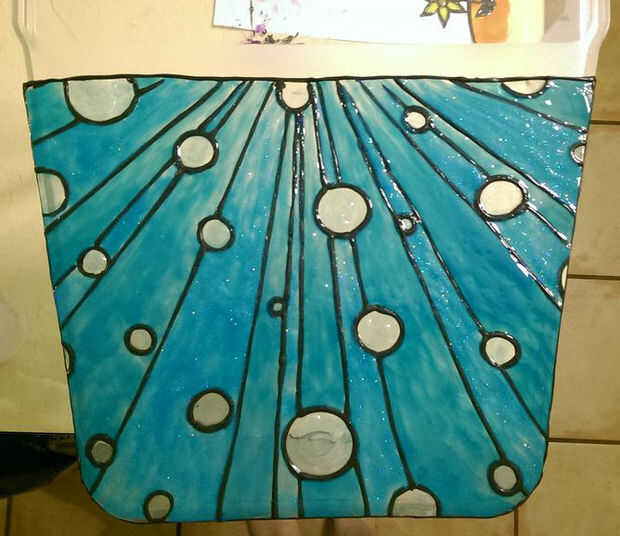Utilice plomo líquido para ir alrededor de los bordes y cerrar bien, esto lo remata y le da el aspecto de un fondo de vidrieras.
