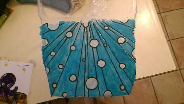 Pelar la pintura seca en el acetato. Papel blanco de impresora puede utilizarse por debajo de ella en la peladura apagado y la aplicación para asegurarse de que no se pega a cualquier cosa que usted no quiere que.