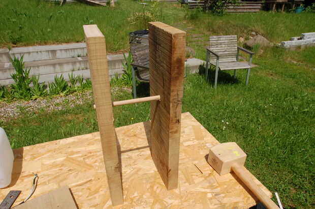 Taladre agujeros de 15 mm en el timberparts vertical y poner el poste de 15 mm en los agujeros.