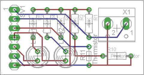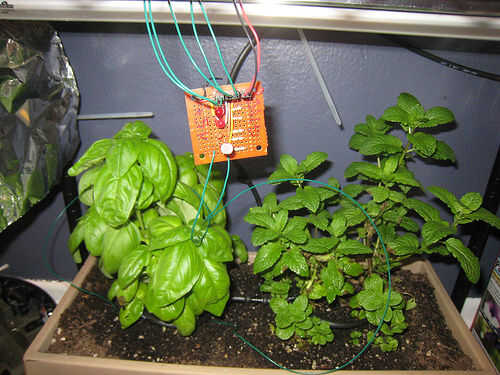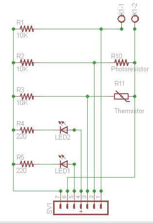 Mi sensor fue diseñado para tener a bordo los sensores de temperatura, humedad y luz. También, incluí 2 LEDs rojos por lo que podría indicar si se está regando las plantas o si la temperatura fue de un rango aceptable. Por supuesto esto fue antes de que yo había decidido mantener las plantas en el interior, así que en retrospectiva probablemente se zanja el sensor de temperatura y luz y deja el LED en el arduino. Mejor aún podía han solo usé el onboard LED conectado al pin 13 de arduino. Entonces todo lo que le tengo es dos cables dejando el arduino para que actúen como el sensor de humedad para la planta. A pesar de todo, esto fue una diversión forma parte del proyecto y aprendí mucho.