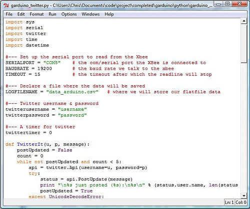 En lugar de incluir el código en el texto aquí he decidido incluir los archivos. Usted debe ser capaz de abrir estos con el IDE de Arduino para el código de arduino y con marcha lenta o un editor de texto para el código Python.
