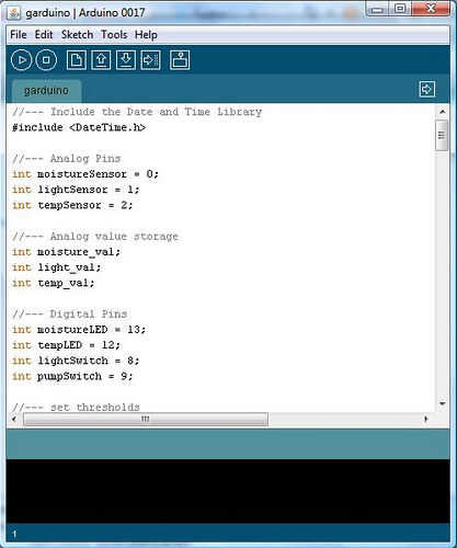 De hecho pensé que podía hacer un mejor trabajo que regula el tiempo de mi laptop. No sólo la luz sólo sería de noche y por la mañana cuando importaría, pero pude restablecer el poder de arduino en cualquier momento y no cambiaría este horario. La ventaja de este método sería que también sería capaz de grabar las lecturas del sensor desde el jardín a mirar más tarde.