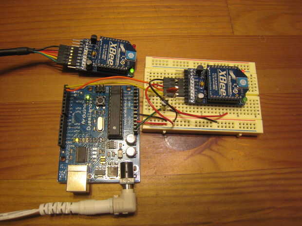 Puede me han llevado horas, pero este paso no debería llevarte mucho una vez que usted haya configurado su Xbees. Esencialmente puede quitar el cable USB entre su ordenador y el arduino, conecta los módulos Xbee (uno a la computadora mediante un cable FTDI) y otro para el arduino a través de líneas de tx/rx y luego continuar como si todavía estaban usando el cable USB. ¿No me creen? Pruébalo. Tal vez esto era obvio para otras personas pero fue muy emocionante cuando me di cuenta.