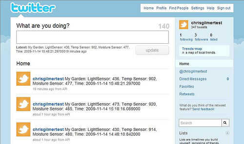 Le he pedido a amigos que me ayude a subir con algunos mensajes tontos para mi jardín a tweet, basado en las lecturas del sensor, así que tal vez saldré algunos comentarios de humorismo allí pronto.