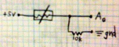La temperatura y sensores de luz son fácil: Conecte un extremo de cada sensor a + 5v en el arduino y el otro extremo a ambos una e/s analógica en el arduino y un resistor de k 10. Luego, conecte el otro extremo de la resistencia a tierra de arduino y se deleitan en sus habilidades de construcción de sensor.