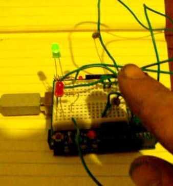 -humedad-clavos de punta de prueba separados--> relé conectado para pin 7 flips, encender nada conectado en ese enchufe. Relé debe apagarse cuando los clavos se juntan