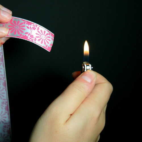 Quemar ligeramente los extremos de la cinta con un mechero para evitar que se deshilache.