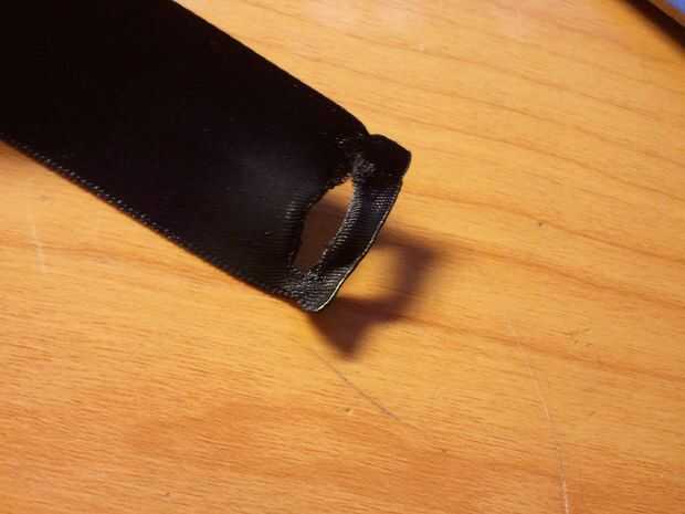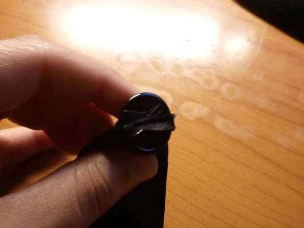 Compruebe para ver si el ojal es lo suficientemente grande como para pasar fácilmente. Si no, hacer la incisión un poco más grande. Cuando encaja perfectamente uso un fósforo para calentar sello el agujero de manera que no debilite.