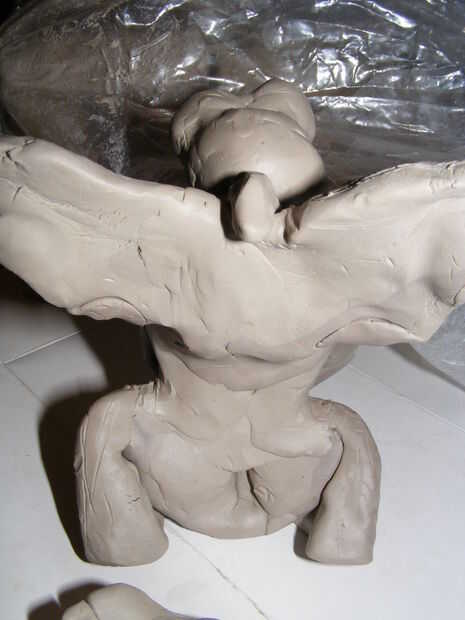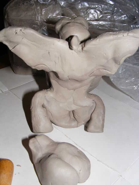 imparto clases de habilidades básicas de escultura para crear una gárgola alada que incluye escultura expresión y carácter frente a la gárgola, cómo crear escalas y la textura, cómo hacer alas que son del mismo tamaño y con palo como costillas, cómo
