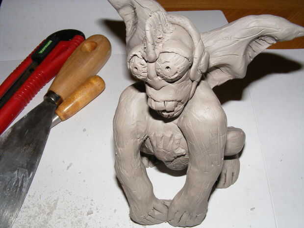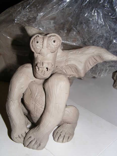 imparto clases de habilidades básicas de escultura para crear una gárgola alada que incluye escultura expresión y carácter frente a la gárgola, cómo crear escalas y la textura, cómo hacer alas que son del mismo tamaño y con palo como costillas, cómo