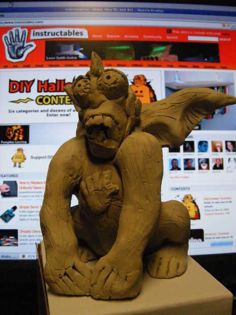La arcilla seca para un color de piedra natural pero puede colorwash en grises para simular una vieja gárgola de granito o piedra caliza.