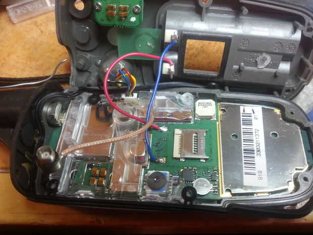 De la soldadura de dos alambres de terminales a los conectores de la batería en gpsboard. Seleccione como hilos finos como sea posible.
