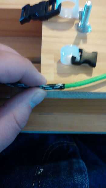 Con un encendedor, utilice la sección azul de la llama para una quemadura más controlada y derretir un poco el final de la 1 de la paracords. Entonces rápidamente forma la parte derretida en una cúpula.